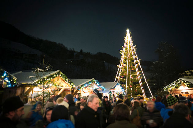 Der traditionelle Adventmarkt in Marktschellenberg findet wieder an zwei Wochenenden im Advent statt. Los geht es am Samstag vor dem 1. Advent mit der Eröffnung durch die Schellenberger Dorfbäuerinnen. Am 1. Advent sowie am 3. Adventswochenende werden an den urigen Hütten selbstgemachte Adventskränze, detailverliebter Weihnachtsschmuck sowie Geschenkartikel angeboten. Bei den kulinarischen Spezialitäten dürfen neben heimischen Schmankerln auch weihnachtstypische Angebote wie Punsch, Glühwein, Kekse und Maroni nicht fehlen. Ein besonderer Höhepunkt beim Adventmarkt in Marktschellenberg ist eine spektakuläre Feuershow am 3. Advent. (© FuM)