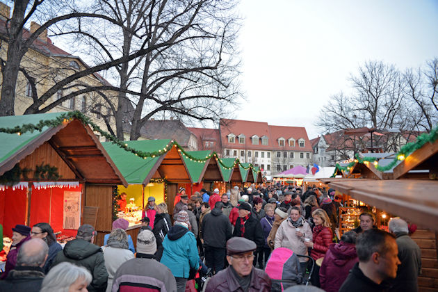 Der Adventsmarkt in Delitzsch verwandelt den Marktplatz der Loberstadt in ein vorweihnachtliches Schlaraffenland und lädt Einheimische und Besucher gleichermaßen zu einem genussvollen Adventswochenende ein. Mit über 80 Marktständen bietet dieser Markt ein Fest für alle Sinne. Besucher können sich auf eine internationale Vielfalt kulinarischer Genüsse freuen, darunter Salzwedeler Baumkuchen, Trdelník, Poffertjes, Old English Fudge, Island-Lakritz, Macaron, Nougat de Montélimar, Flammlachs, Galette und vieles mehr. Die Auswahl an Spezialitäten ist beeindruckend. Für Liebhaber von Handwerkskunst gibt es zahlreiche Möglichkeiten, handgefertigte Unikate und filigrane Arbeiten von Glasbläsern, Keramikern, Holzgestaltern, Mode-Manufakturen und Korbmachern zu bewundern und zu erwerben. Zudem bietet der Indoor-Bereich im Foyer und Kinosaal des Markt Zwanzig weitere kreative Kunsthandwerksstände. Der Adventsmarkt in Delitzsch hält auch für die kleinen Besucher ein besonderes Highlight bereit: Neben Karussell- und Eisenbahnfahrten sorgt das kostenfreie Holzspielmobil am Samstag- und Sonntagnachmittag für leuchtende Kinderaugen. Auf der großen Marktbühne gibt es zudem ein durchgehendes Programm mit Musik, Kunst und Darbietungen von Vereinen. (© FuM)