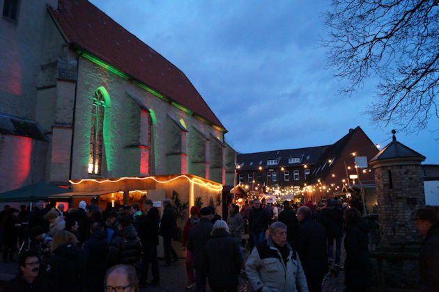 Der Adventsmarkt in Selm, einer Stadt im südlichen Münsterland nördlich der Lippe, öffnet auch in diesem Jahr seine Pforten. An etwa 60 Ständen können die Besucher verschiedene weihnachtliche Waren kaufen, aber auch ihren Hunger und Durst stillen. An allen Tagen treten Chöre und Musikgruppen in der Friedenskirche auf. Ein optisches Highlight stellt der neue Glitzerwald dar. Dabei handelt es sich um einen künstlichen Wald aus Tannen vor der Friedenskirche, der begeh- und erlebbar ist. Die Einzelhändler beteiligen sich zum Adventsmarkt in Selm mit einem verkaufsoffenen Sonntag. Der Adventsmarkt in Selm findet immer am ersten Adventswochenende statt. (© FuM)