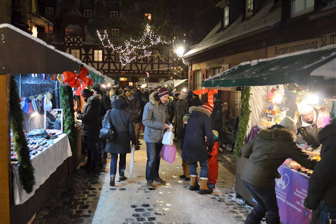 Die Altstadt-Weihnacht auf dem Waagplatz in Fürth findet 2025 bereits zum 44. Mal statt. Die Besucher finden auf diesem Weihnachtsmarkt ein breites Angebot an Geschenkartikeln wie Blechspielwaren, Keramik, Porzellan, Schmuck oder Puppen. Zeitlich begrenzt kann man einem Korbflechter und einem Schmied bei ihrer Arbeit über die Schulter schauen. Aber auch weihnachtliche Dekoration wie Kerzen, Windlichter oder Holzkunst sind vertreten. Zu den Rennern unter den kulinarischen Spezialitäten bei der Fürther Altstadtweihnacht zählen Glühwein, Waffeln, Maronen und Bratwürste. Ein abwechslungsreiches Bühnenprogramm mit musikalischen Beiträgen rundet diesen besonderen Weihnachtsmarkt ab. Höhepunkt zur Altstadt-Weihnacht in Fürth wird der Besuch des Fürther Christkinds sein. Die Marktruhe wird täglich vom Nachtwächter ausgerufen. Veranstalter ist der Fürther Altstadtverein. (© FuM)