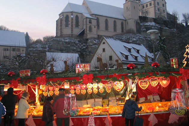 Der Christkindlesmarkt in Haigerloch findet jedes Jahr am dritten Wochenende im Dezember statt. Die Händler halten ein breites Warenangebot bereit. Eine musikalische Umrahmung sorgt auf dem Weihnachtsmarkt für die entsprechende Atmosphäre. Die Kinder können sich auf den Nikolaus freuen, der kleine Geschenke an sie verteilt. Für das leibliche Wohl der Weihnachtsmarkt-Besucher ist an beiden Tagen bestens gesorgt. (© FuM)