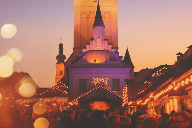Der Christkindlmarkt in Deggendorf öffnet seine Pforten vor dem Alten Rathaus, dessen gotischer Turm eine malerische Kulisse für diese festliche Veranstaltung bildet. Über 20 liebevoll gestaltete Hütten bieten eine breite Auswahl an Köstlichkeiten und wärmenden Getränken, die ihre verlockenden Düfte in die Luft schicken. Hier kann man sich von Glühwein, Bratwürsten und anderen regionalen Schmankerln verwöhnen lassen. Die Atmosphäre wird durch gemütliche Verweilplätze wie mit Zweigen bedeckte Futterkrippen und ein großer alter Schlitten ergänzt. Der Christkindlmarkt in Deggendorf ist nicht nur ein Ort für kulinarische Genüsse, sondern auch für Geschenke und Handwerkskunst. Besucher können hier nach Geschenken stöbern, die von kunstvollen Handwerkern gefertigt wurden. Der Christkindlmarkt in Deggendorf bietet auch ein stimmungsvolles Kulturprogramm mit festlichen Melodien, märchenhaften Kinderaktionen und aufregenden Perchtenauftritten. An den ersten beiden Adventswochenenden (jeweils von Freitag bis Sonntag) können Besucher darüber hinaus den Kunsthandwerkermarkt im Alten Rathaus besuchen. Von Glasarbeiten über Filzwaren bis hin zu Grußkarten und Adventsdekorationen gibt es hier viel zu entdecken. Für die jüngsten Besucher gibt es am zweiten Adventswochenende die Kinderweihnacht im Altstadtviertel, eine zauberhafte Traumwelt mit goldenen Hirschen, Rentierschlitten, dem Nikolaus und einem Märchenwald. Hier können Kinder spielen, staunen, erleben und entdecken. Es gibt eine Kreativwerkstatt, die Möglichkeit, ans Christkind zu schreiben, und sogar eine Gipsmanufaktur. Ein besonderes Highlight sind die großen, beleuchteten LED-Holzspiele im XXL-Format, die in Deutschland einmalig sind und für zauberhafte Momente sorgen. Eine Eisstockbahn am Oberen Stadtplatz rundet den Christkindlmarkt in Deggendorf ab. (© FuM)