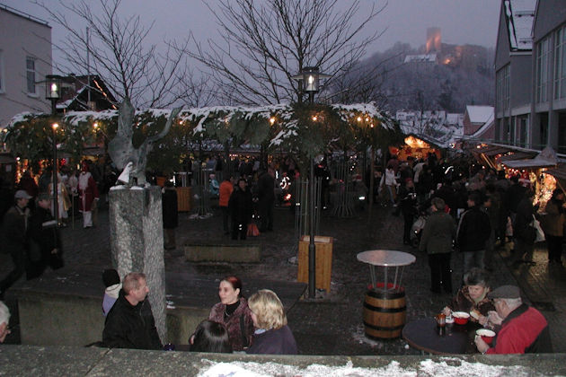 Der Christkindlmarkt in Falkenstein (Oberpfalz) wird am Freitagabend auf dem Marktplatz beim Marienbrunnen eröffnet. Bei diesem Eröffnungs-Event singen Kindergartenkinder und anschließend wird mit einem Fanfarenzug und dem Nikolaus gemeinsam zum Christkindlmarkt am Bahnhofsvorplatz gezogen. An den Ständen der kleinen Budenstadt erwartet die Besucher bis Sonntag ein breites Angebot. Falkensteiner Vereine organisieren ein abwechslungsreiches Rahmenprogramm. Der Christkindlmarkt in Falkenstein (Oberpfalz) findet immer am dritten Advenstwochenende statt. (© FuM)