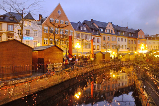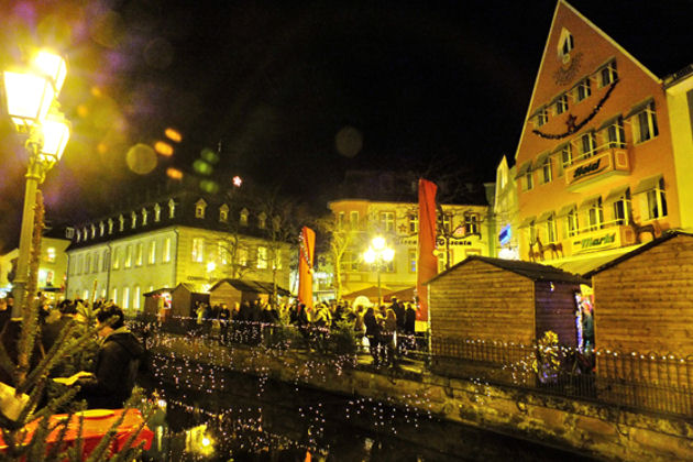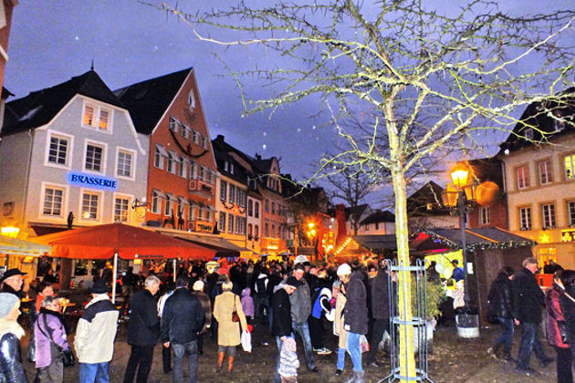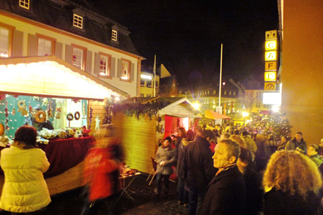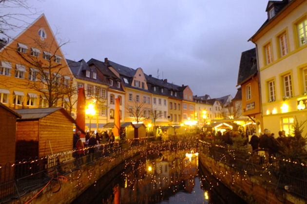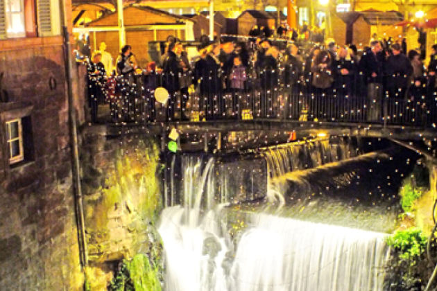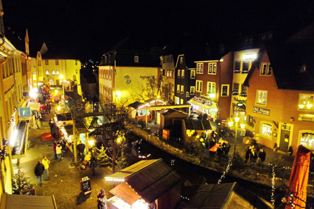 Der Christkindlmarkt in Saarburg öffnet auf dem weihnachtlich gestalteten Buttermarkt und dem Pferdemarkt seine Pforten. Dazu bauen die Händler ihre Stände auf und bieten weihnachtstypische Erzeugnisse und Geschenkartikel, aber auch kulinarische Leckereien und Glühwein an. Die warme, gemütliche Atmosphäre des Marktes am Wasserfall sowie der schöne, leuchtende Christbaum lassen die Besucher verzaubern. Neben musikalischen Programmpunkten dürfen sich die Besucher auf eine Lasershow und Walking-Acts freuen. Für die Kinder gibt es Bastelaktionen sowie den Besuch vom Nikolaus. Der Christkindlmarkt in Saarburg findet in diesem Jahr am zweiten und dritten Advents-Wochenende statt. (© FuM)