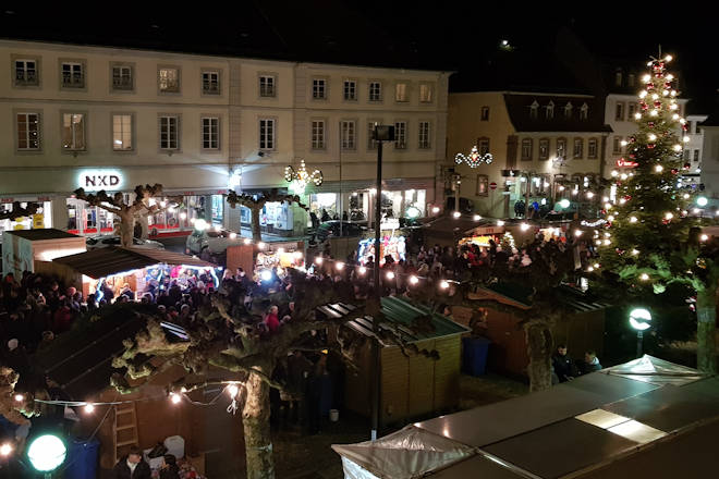 Zahlreiche Besucher werden wieder auf dem Christkindmarkt in Blieskastel erwartet. Es empfängt Sie auf dem festlich geschmückten Paradeplatz und vor dem Rathaus eine weihnachtliche Stimmung. Die barocke Altstadt mit ihren alten Fachwerkhäusern und malerischen Gassen erstrahlt im festlichen Glanz. Auch in der historischen Markthalle verbreitet sich der Duft von Tannengrün, Glühwein, Maronen und herzhafter Bratwurst. An den Verkaufsständen finden Besucher alles was das Herz begehrt, von weihnachtlichen Geschenkideen über Kosmetikartikeln bis hin zu Kunsthandwerk, Schmuck, Keramik und vieles mehr. Auf der großen Bühne am Paradeplatz wird den Gästen ein vorweihnachtliches kulturelles Programm geboten. Der Nikolaus hat wieder seinen Besuch angekündigt. Wer weiß? Vielleicht hat er ja für die Kinder eine kleine Überraschung dabei? Der Christkindmarkt in Blieskastel findet am 2. Adventswochenende statt. (© FuM)