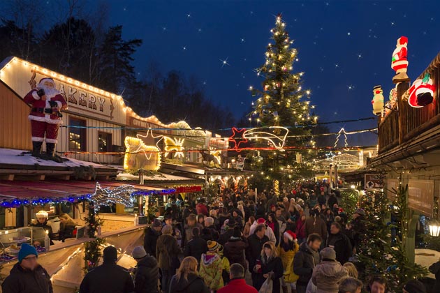 Pullman City lädt ein zum deutsch-amerikanischen Weihnachtsmarkt in Eging a. See ein. Schon optisch ist dieser Weihnachtsmarkt mit seiner prunkvollen Weihnachtsbeleuchtung und den schrill geschmückten Weihnachtsbäumen eine Augenweide. An den Ständen und Buden werden natürlich auch Weihnachtsartikel und kulinarische Spezialitäten aus Amerika angeboten. Auf Plätzchen, Punsch und Glühwein muss man aber auch hier nicht verzichten. Abgerundet wird der deutsch-amerikanische Weihnachtsmarkt mit Livebands, welche an den Abenden für gute Stimmung sorgen. Höhepunkte sind musikalische Country Christmas Shows und der singende Weihnachtsmann, der kleine Geschenke an die Kinder verteilt. Der Weihnachtsmarkt in Pullman City findet an den 6 Wochenenden vor Weihnachten statt. (© FuM)