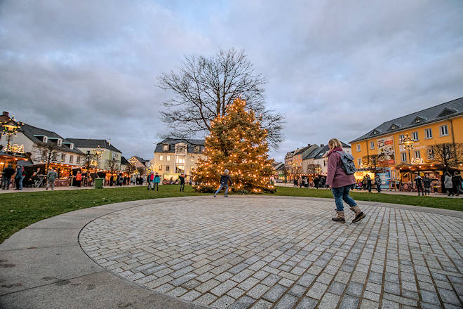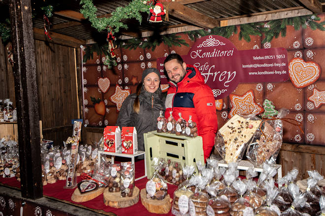 Im oberfränkischen Rehau findet mit dem Lebkuchenmarkt ein ganz besonderer Weihnachtsmarkt statt. Lebkuchen gehören in Rehau und Umgebung zur regionalen Backkultur. Auf dem Lebkuchenmarkt präsentieren die örtlichen Lebkuchenbäckereien ihre Angebotsvielfalt. Bäckereien aus Tschechien und Polen ergänzen das spezielle Sortiment. Rund um den Lebkuchen werden auch Kreationen wie Lebkuchenlikör, Lebkuchenglühwein oder Lebkuchenbratwürste angeboten. Daneben darf Weihnachtsgebäck wie Stollen, Baumkuchen, Zimtsterne oder Butterplätzchen nicht fehlen. Dabei verleiht die Mischung aus namhaften Anbietern und kleineren Manufakturen dem Deutschen Lebkuchenmarkt in Rehau seine Einmaligkeit. Der Rehauer Lebkuchenmarkt findet stets am ersten Adventswochenende statt. (© FuM)