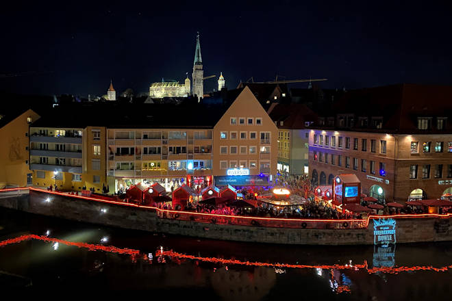 Die größte Feuerzangenbowle der Welt kommt auch in diesem Jahr nach Nürnberg. Die Nürnberger haben diese Attraktion von Anfang an in ihre Herzen geschlossen. Damit wurde die Feuerzangenbowle zum beliebtesten Treffpunkt der weißen Jahreszeit. Inzwischen ist ein ganzes Feuerzangenbowlendorf an der Pegnitz entstanden. Ein wahrlich gigantischer Kupferkessel mit 9.000 Liter Fassungsvermögen wartet auf die Besucher. Dieser Kessel ist randvoll mit Feuerzangenbowle, einer duftenden Mischung aus Rum, Rotwein und Zucker. Insgesamt sechs kulinarische Gastgeber laden die Nürnberger und die Besucher aus aller Welt zum stimmungsvollen Nostalgiefest ein. Bei der exklusiven Komposition des sagenumwobenen Heißgetränks für die größte Feuerzangenbowle der Welt wurde besonderes Augenmerk auf hochwertige Zutaten und einen ausgezeichneten Geschmack gelegt. Zusammen mit dem unvergessenen Film "Die Feuerzangenbowle" mit Heinz Rühmann werden den Gästen nicht nur die Hände, sondern auch die Herzen erwärmt. Neben Bowle gibt es allerhand Köstlichkeiten: Von herzhaften Speisen über traditionelle Nürnberger "Drei im Weckla" bis hin zu süßen Speisen. Heiligabend hat die größte Feuerzangenbowle der Welt sogar bis 16 Uhr geöffnet. Auch nachdem der weltberühmte Nürnberger Christkindlmarkt seine Pforten geschlossen hat, laden die Veranstalter der größten Feuerzangenbowle der Welt zum weiterfeiern ein. In der Silvesternacht wird bis 3 Uhr morgens gefeiert und das neue Jahr begrüßt. (© FuM)