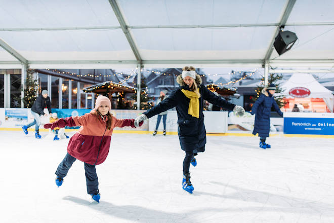 Die Eiswelt Scharbeutz lockt diesen Winter mit einem einzigartigen Erlebnis: der längsten Schlittschuh-Schleife Norddeutschlands. Auf einer überdachten Eisfläche von 450 Quadratmetern bildet sich das Herzstück dieser frostigen Oase. Doch Scharbeutz setzt noch eins drauf - als einzige Urlaubsregion in Schleswig-Holstein präsentiert sie einen 250 Meter langen Eis-Rundlauf. Diese Schleife führt durch den malerischen Kurpark und sogar über den Kurparksee, dank einer eigens installierten Brücke. Abends verwandelt sich ein Teil der Eisfläche in eine begeisterte Eisstock-Arena, in der die Stöcke über den spiegelglatten Boden flitzen. Umgeben von einem lichtergeschmückten Budenzauber bietet die Eiswelt Scharbeutz wärmende Getränke wie köstlichen Punsch und regionalen Winzer-Glühwein. Hier können Einheimische und Besucher vor oder nach dem Eisvergnügen gemütlich zusammenkommen, die festliche Atmosphäre genießen und sich mit weihnachtlichen Leckereien verwöhnen lassen. (© FuM)