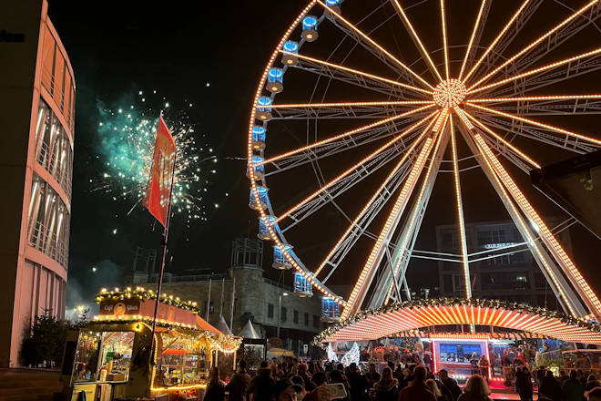 Der Hafen-Weihnachtsmarkt geht auch 2025 in die Verlängerung: der Hafen-Neujahrsmarkt am Schokoladenmuseum in Köln verspricht auch nach Weihnachten ein besonderes Erlebnis. Vom 26. bis 28. Dezember 2025 können Besucher die festliche Atmosphäre und die traumhafte Kulisse des Rheinufers genießen. Unter dem Motto "Essen und Trinken am Riesenrad" lädt der Neujahrsmarkt zu gastronomischem Genuss ein. Täglich von 12:00 bis 22:00 Uhr können Besucher Köln aus luftiger Höhe im Riesenrad betrachten und das alte Jahr stilvoll ausklingen lassen. Der Hafen-Neujahrsmarkt am Schokoladenmuseum bietet somit eine entspannte Möglichkeit, das Jahr ausklingen zu lassen. Die traumhafte Kulisse des Rheinufers und das vielfältige gastronomische Angebot machen diesen Markt zu einem einzigartigen Erlebnis für alle Besucher. (© FuM)