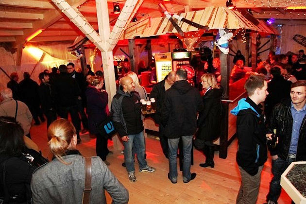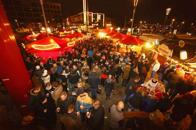Der Hüttenzauber-Weihnachtsmarkt vor dem Haus der Presse in Dresden öffnet wieder seine Pforten. Mitten in der sächsischen Metropole ist in der Adventszeit Après Ski und Hüttengaudi angesagt. Eine Hüttenbar, die Après Ski Hütte, das Hüttenrestaurant und die Außenterrasse laden ein zum Feiern und Schlemmen. Bei Hüttenglühwein, weihnachtlichen Spezialitäten bis hin zum Gänsebraten und der richtigen Musik kommt Stimmung auf. Abends sorgen Mottopartys wie die Schlager-Party am Montag, die Flirt-Party am Mittwoch, die After-Work-Party am Donnerstag oder die Aprés-Ski-Party am Samstag für gute Laune. (© FuM)