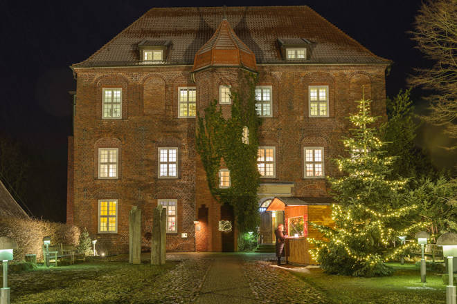 Der "detailreich" Weihnachtsmarkt für Kunsthandwerk und Design auf Schloss Agathenburg in der gleichnamigen Gemeinde im Landkreis Stade in Niedersachsen findet 2025 bereits zum 31. Mal statt. Im urigen Pferdestall stellen Kunsthandwerker ihre Exponate aus. Die gezeigten Geschenkideen und Unikate, die von Schmuck über Hüte, Taschen und Kleidung bis hin zu Keramik-, Papier- und Textilarbeiten reichen, werden auch zum Kauf angeboten. Auch der Museumsshop öffnet am Weihnachtsmarkt-Wochenende. Um das leibliche Wohl der Weihnachtsmarkt-Besucher kümmern sich das Adventscafé im Schloss und im Pferdestall. Für die Kinder gibt es an beiden Tagen von 14 bis 16.30 Uhr betreutes Spielen und Basteln. Am Samstagnachmittag dürfen sich die Besucher auf Adventsmusik freuen. Da der Weihnachtsmarkt in den historischen Innenräumen stattfindet, ist er für Hunde nicht geeignet. (© FuM)