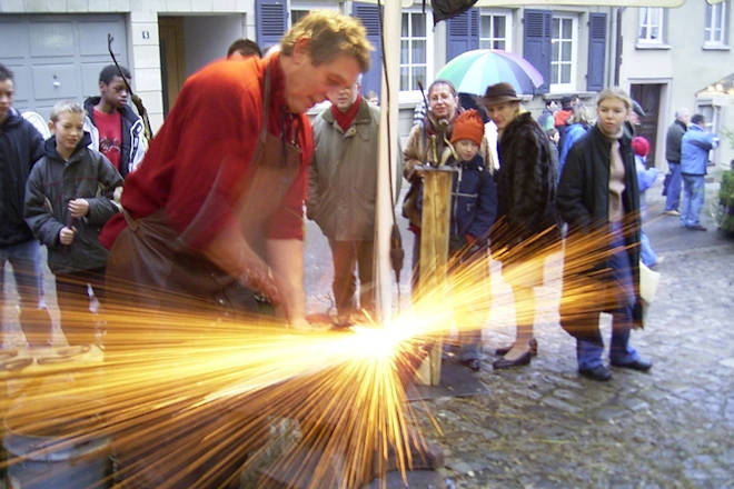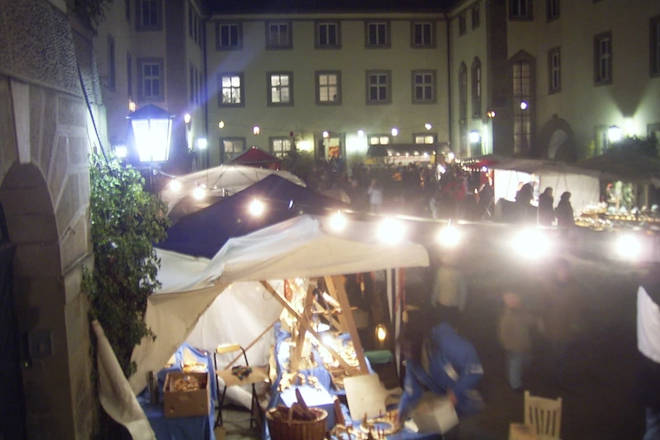 Am ersten Adventswochenende lädt ein Kunsthandwerkmarkt nach Schwäbisch Hall ein. 2024 öffnet dieser Weihnachtsmarkt bereits zum 41. Mal. Rund um Hospitalkirche, Goethe-Institut und Hospital-Hof präsentieren Künstler und Kunsthandwerker ihre ausschließlich selbst gefertigten Exponate. Die Palette reicht von Textilwaren über Holzschnitzereien, Schmiedekunst, Drechselwerk und Holzspielzeug bis hin zu Tiffany und Keramik. Einigen der Handwerker kann man bei ihrer Arbeit über die Schulter schauen. Für Kinder gibt es Mitmachaktionen. Gaukler und Musiker gestalten das Rahmenprogramm für den Kunst-Hand-Werk-Markt in Schwäbisch Hall. (© FuM)