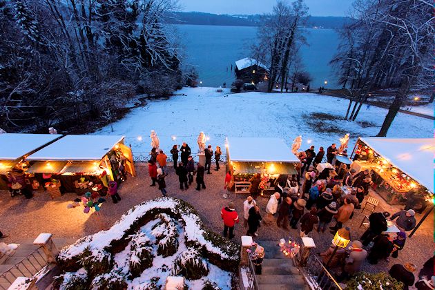 Der La Villa Weihnachtsmarkt in Niederpöcking findet 2019 bereits zum 25. Mal rund ums La Villa direkt am Westufer des Starnberger Sees statt. Am ersten Advents-Wochenende erstrahlt das Gelände um das Hotel wieder im weihnachtlichen Glanz. Das Angebot reicht von Adventskränzen über Kunsthandwerk bis hin zu Raritäten. Duftende Plätzchen, Glühwein und andere hausgemachte Weihnachtsleckereien sorgen für das leibliche Wohl. Die großen Besucher dürfen sich auf stimmungsvolle Weihnachtsmusik freuen, während die kleinen Besucher dem Märchenerzähler lauschen. (© FuM)