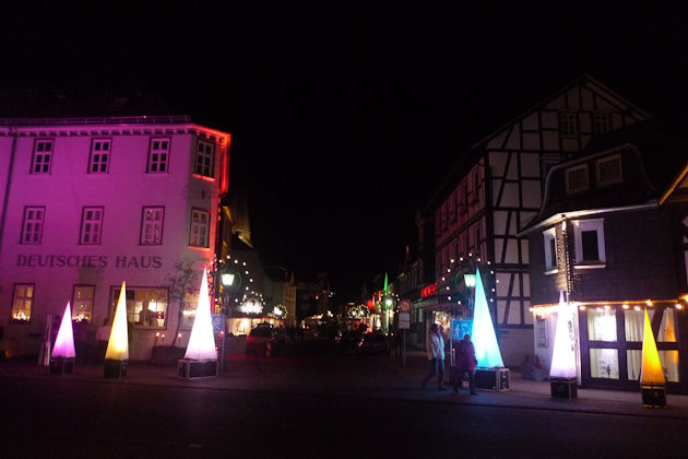 In der Adventszeit erstrahlt Bad Laasphe wieder in weihnachtlichem Glanz. Zahlreiche Lichter und Lichterketten sorgen für eine schöne, besinnliche Atmosphäre wenige Tage vor Heiligabend. Wem zudem noch das ein oder andere Geschenk fehlt, der könnte es an diesem Abend noch einkaufen, denn viele Geschäfte der Händlergemeinschaft "Pro Bad Laasphe" warten nicht nur mit ihren eigenen Produkten, sondern werden mit diversen Überraschungsständen zu überzeugen wissen. Entlang der Bahnhofstrasse sowie in der Altstadt bis zum Ende der Königsstraße haben sich die Händler und Künstler einen Platz gesucht in der Hoffnung auf ein möglichst großes Publikum. Der Lichterabend in Bad Laasphe findet in der Regel am Donnerstag vor dem dritten Advent statt. (© FuM)