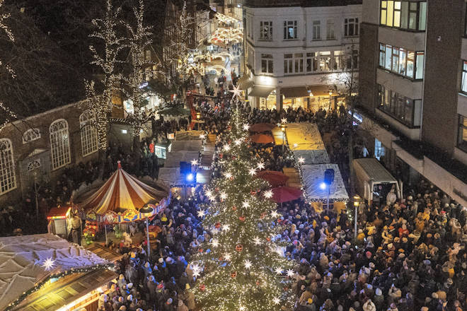 Der Lichtermarkt in Elmshorn ist zweifellos einer der bezauberndsten Weihnachtsmärkte in der Region und zieht jedes Jahr mehr als hunderttausend Besucher an. In der Wintersaison verwandelt sich der Alte Markt, gelegen an der malerischen St. Nikolai-Kirche, in einen funkelnden Lichtermarkt. Seinen Namen verdankt er den zahlreichen Lichtpunkten, die die Bäume auf dem Alten Markt schmücken, sowie der preisgekrönten Straßenbeleuchtung, die eigens für Elmshorn kreiert wurde. Die Eröffnung des Lichtermarktes ist ein wahres Spektakel, bei dem ein Engel in strahlendem Weiß über dem Platz schwebt und die "Lichter" anschaltet. Die rustikalen Holzbuden laden zum Verweilen, Essen und Bummeln ein und verleihen dem Markt eine ganz besondere Atmosphäre. Hier stehen Gemütlichkeit und Familienfreundlichkeit im Vordergrund. Neben kulinarischen Köstlichkeiten bietet der Markt ein nostalgisches Karussell und verschiedene Erlebnisoasen, die die Herzen der Kinder höher schlagen lassen. Elmshorner Engel überraschen die kleinen Besucher, und sogar der Nikolaus wagt spektakuläre Abseilaktionen vom Kirchturm. Mittwochs ist Familientag auf dem Lichtermarkt, mit vergünstigten Angeboten für die ganze Familie. Nicht verpassen sollte man die Elmshorner Weihnachtsparade (Freitag, 12.12.2025). In der unmittelbaren Umgebung des Marktes laden zahlreiche attraktive Einkaufsmöglichkeiten zum Weihnachtsshopping ein. Parallel zum Lichtermarkt in Elmshorn laden die Stadtwerke ein paar Straßenzüge weiter auf dem Holstenplatz zum Stadtwerke Eisvergnügen ein. (© FuM)