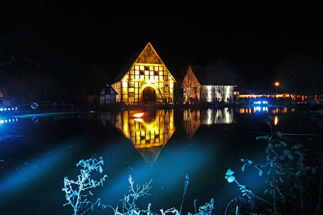 Der Museumsadvent in Detmold findet 2025 bereits zum 18. Mal statt. Dazu wird das Museumsgelände vom LWL Freilichtmuseum Detmold festlich illuminiert. Rund 30 Aussteller bauen ihre Stände rund um den Dorfteich auf und halten ein vielseitiges Sortiment an weihnachtlichen Waren bereit. Auch das Rahmenprogramm kann sich sehen lassen. Die Besucher werden in vergangene Weihnachtszeiten um 1900 entführt. Neben Vorführungen von traditionellen Handwerkstechniken dürfen sich die Besucher auf Veranstaltungen in den Häusern des Paderborner Dorfes freuen. Der Detmolder Museumsadvent findet immer am zweiten Adventswochenende statt. (© FuM)