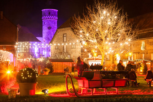 Zum Oelber-Christkindlmarkt in Baddeckenstedt putzen sich das Schloss und die Ställe weihnachtlich heraus. Überall duftet es nach Glühwein und frisch gebackenen Plätzchen. Mit dem Einbruch der Dunkelheit sorgen die Holzfeuer im Schlosshof für eine besondere Atmosphäre. So erlesen wie das Ambiente sind auch die Beschicker des Christkindlmarktes. Fast 120 Aussteller, Künstler und Händler bieten hier ihre weihnachtlichen Produkte an. So verwundert es nicht, dass dieser Weihnachtsmarkt klein angefangen hat und von Jahr zu Jahr gewachsen ist. Höhepunkte sind der Laternenumzug, den der Nikolaus persönlich anführen wird, sowie das nostalgische Kinderkarussell, der Mitmachzirkus und vieles mehr. Für das leibliche Wohl ist gesorgt. Die Köstlichkeiten reichen von Wildspezialitäten und Burgunderbraten über Flammkuchen und Schmalzkuchen bis hin zu Weinen und Pasteten aus Frankreich. Samstags und sonntags steht den Besuchern ein kostenloser Park & Ride Service zum Schloss zur Verfügung. (© FuM)