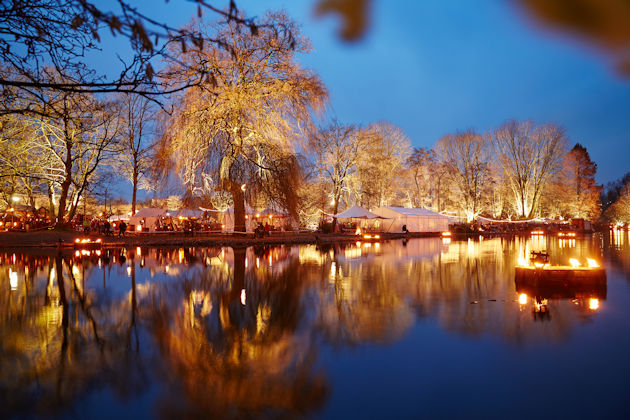 Der Phantastische Lichterweihnachtsmarkt im Fredenbaumpark Dortmund ist einer der zauberhaftesten Weihnachtsmärkte in Deutschland. Dieser besondere Weihnachtsmarkt entführt die Besucher in eine Welt voller Fantasie und Magie, wo Piraten auf mächtige Drachen treffen und mittelalterliche Spielleute fröhliche Melodien spielen. Ein Höhepunkt des Phantastischen Lichterweihnachtsmarktes ist die atemberaubende Beleuchtung. Tausende von Fackeln und Feuern tauchen den gesamten Park in ein warmes und geheimnisvolles Licht, das die Besucher in eine andere Zeit und Dimension versetzt. Die schwimmende Brücke über den See bietet den perfekten Blick auf die glitzernde Wasseroberfläche, die von Hunderten schwimmender Lichter beleuchtet wird. Der Phantastische Lichterweihnachtsmarkt ist nicht nur ein visuelles Fest, sondern auch ein kulinarischer Genuss. Besucher können deftige Spezialitäten aus fernen Ländern und längst vergangenen Zeiten probieren. Von heißem Fruchtwein bis hin zu süßem Honigwein gibt es hier eine breite Palette an Getränken, die die winterliche Kälte vertreiben. Für diejenigen, die nach Unterhaltung suchen, bietet der Phantastische Lichterweihnachtsmarkt zahlreiche Attraktionen. Von Gauklern und Zauberern, die die Massen begeistern, bis hin zu Feuerkünstlern, die mit ihren brennenden Keulen beeindrucken, gibt es immer etwas zu sehen. Kinder können sich in der magischen Kinderwelt austoben, die mit Holzpferden, einem Bällebad und einem mittelalterlichen Karussell begeistert. Eine Neuheit ab 2023 ist das gigantische 8-Master-Zirkuszelt, das die Konzertarena ersetzt. Hier können bis zu 3.500 Zuschauer die Auftritte von Bands aus der Mittelalterrock- und Folkrock-Szene sowie aus der dunklen Romantik genießen. Die Liste der Bands bleibt zwar teilweise ein Geheimnis, aber die bereits bekannten Namen versprechen großartige Musik. Als krönender Abschluss eines jeden Markttages findet ein spektakuläres Feuerspektakel statt, das die Besucher in seinen Bann zieht. Die Flammen wirbeln durch die Luft und tauchen den Markt in ein märchenhaftes Licht. Der Phantastische Lichterweihnachtsmarkt in Dortmund ist zweifellos ein Ort, an dem die Grenzen zwischen Realität und Fantasie verschwimmen. Mit seiner einzigartigen Atmosphäre, den fantastischen Attraktionen und der zauberhaften Beleuchtung ist er ein Muss für jeden, der die Magie der Weihnachtszeit erleben möchte. (© FuM)