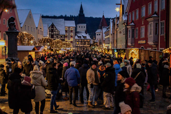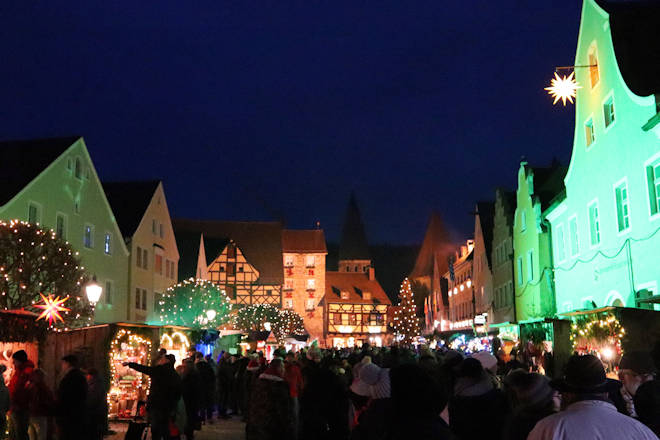 Die Innenstadt der mittelalterlichen Stadt Berching öffnet ihre Tore zum diesjährigen romantischen Weihnachtsmarkt. An zahlreichen Ständen zeigen Kunsthandwerker ihre Arbeiten. Für das kulinarische Wohl der Besucher sorgen einheimische Vereine und Gruppen mit kulinarischen Spezialitäten und Heißgetränken. Gesangs- und Musikgruppen aus der Region gestalten das musikalische Rahmenprogramm. Die beliebte Krippenausstellung findet auch in diesem Jahr statt. Für die Kinder gibt es Kreativangebote wie die Bastel- und Malstube. Nikolaus und Christkind mit Engel stehen für Fotos mit den kleinen Besuchern bereit. Die Kinderandacht in der St. Lorenz-Kirche mit Lichterzug in die Innenstadt sowie Kutschfahrten runden den Weihnachtsmarkt in Berching ab. (© FuM)