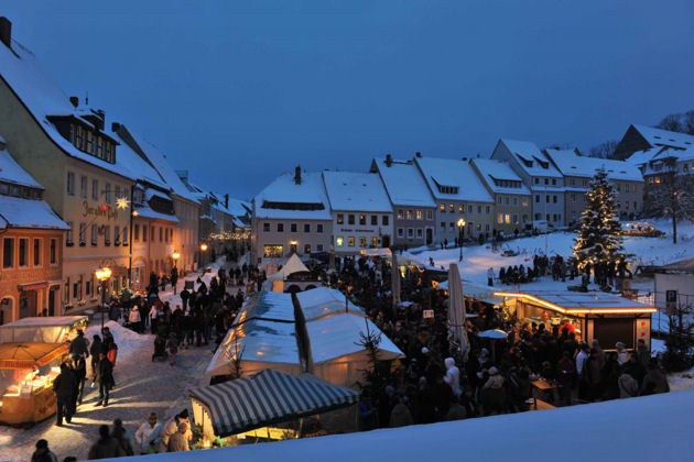 Der romantische Weihnachtsmarkt in Stolpen, einer sächsischen Kleinstadt östlich von Dresden, lädt auch in diesem Jahr am 2. Adventswochenende ein. Auf dem Marktplatz herrscht am Samstag und Sonntag weihnachtliches Markttreiben, denn zahlreiche Händler & Gastronomen bauen hier ihre Buden auf und bieten Weihnachtsdekoration, Geschenkartikel und kulinarische Spezialitäten an. Ein Rahmenprogramm rundet den romantischen Weihnachtsmarkt in Stolpen ab. Meist zeitgleich findet im Alten Amtsgericht ein kleiner Adventsmarkt statt. (© FuM)