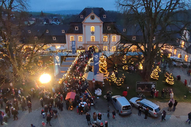 Im Brauereihof des Fürstlichen Brauhauses vor der Kulisse des Deutschordensschlosses Ellingen findet 2025 der 16. Schloss-Weihnachtsmarkt statt. An etwa 20 Ständen werden weihnachtliche Waren, Geschenkartikel, Kunsthandwerk und Kulinarische Spezialitäten angeboten. Mit dem Prolog des Christkinds vom Schloss wird der Weihnachtsmarkt am Samstag eröffnet. An beiden Tagen wir ein abwechslungsreiches Bühnenprogramm geboten. Die Krippenausstellung mit Verkauf in der Hausner Gasse 5 sowie das am Sonntag geöffnete Spielzeugmuseum im Pleinfelder Tor runden den Ellinger Schloss-Weihnachtsmarkt ab. (© FuM)