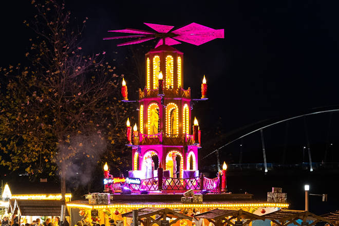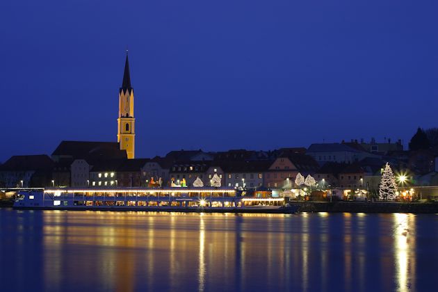 Der Schwimmende Christkindlmarkt in Vilshofen an der Donau findet auch in diesem Jahr an der Donaupromenade und auf dem Personenschiff "Stadt Linz" statt. Ein optischer Blickfang ist der Christbaum mit seinen 1.500 Kugeln. Einheimische Künstler und Fieranten, aber auch Markthändler und Handwerker aus Österreich, der Schweiz und Ungarn beschicken diesen besonderen Weihnachtsmarkt. Neben den kunsthandwerklichen Artikeln sind die kulinarischen Spezialitäten aus Niederbayern bei den Weihnachtsmarkt-Besuchern besonders gefragt. Musikalische Darbietungen runden den Schwimmende Christkindlmarkt in Vilshofen an der Donau ab. Weitere Höhepunkte des Schwimmenden Christkindlmarktes sind die 9 Meter hohe "Glühweinpyramide" und die "Größte Brettkrippe der Welt". Trotz des besonderen Flairs direkt an der Donau wird beim Schwimmenden Christkindlmarkt in Vilshofen kein Eintritt erhoben und es gibt auch wieder kostenlose Busparkplätze. Der Schwimmende Christkindlmarkt in Vilshofen an der Donau findet jedes Jahr an den ersten drei Advents-Wochenenden statt. Und es gibt gute Nachrichten, denn der Christkindlmarkt 2025 geht am 4. Adventswochenende mit dem "Vilshofener Adventszauber" in Verlängerung! (© FuM)