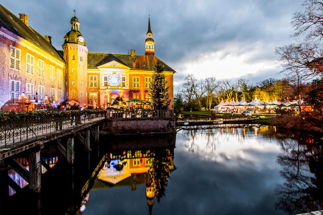 "Weihnachten auf Schloss Gödens" heißt es auch in diesem Jahr am 1. Advents-Wochenende. Das prachtvoll illuminierte Schloss Gödens bei Sande wird wieder Schauplatz eines der schönsten Weihnachtsmärkte Niedersachsens. Rund 100 Aussteller präsentieren in beheizten Pagodenzelten ein weihnachtliches Warenangebot. Zum Rahmenprogramm bei "Weihnachten auf Schloss Gödens" gehören musikalische Darbietungen ebenso wie Lesungen. Gastgeber der Landpartie Weihnachten Schloss Gödens ist Familie von Wedel. Die Veranstaltungsfirma Schloss Gödens Entertainment übernimmt die Organisation. (© FuM)