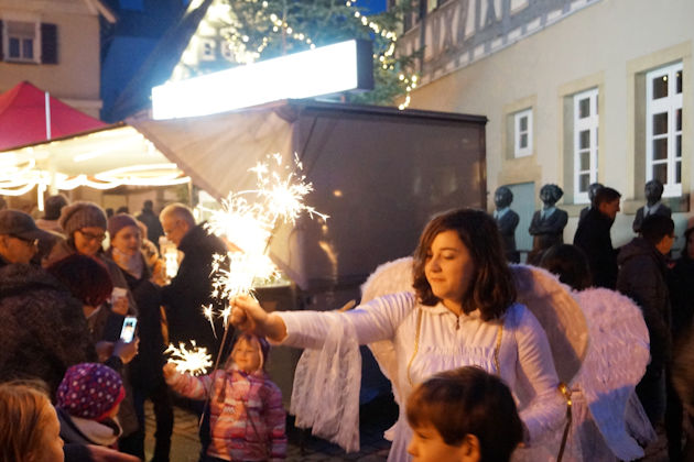 Der "Güglinger Weihnachtsbummel" findet 2025 bereits zum 31. Mal statt. Bei diesem vorweihnachtlichen Event handelt es sich um eine Mischung aus Weihnachtsmarkt und verkaufsoffenen Sonntag. In der autofreien Innenstadt herrscht ab 13 Uhr emsiges Markttreiben. Nicht fehlen dürfen beim Angebot natürlich die weihnachtlichen Leckereien und natürlich Glühwein. Dazu wird den Besuchern ein abwechslungsreiches Rahmenprogramm mit Livemusik und immer wieder neuen Höhepunkten geboten. So gab es in den Vorjahren beispielsweise ein Wunderkerzen-Feuerwerk und man konnte den Weihnachtsbummel von oben betrachten, indem man die Turm-Stufen der Mauritiuskirche hinaufgestiegen war. In der Regel fällt der Termin für den Güglinger Weihnachtsbummel auf den 1. Advent. (© FuM)