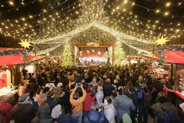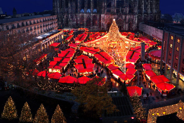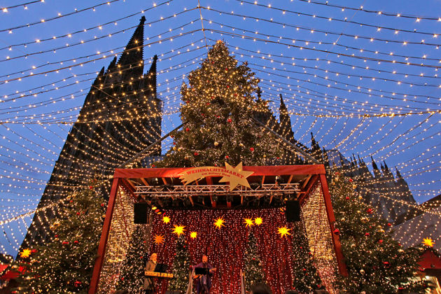 Der Weihnachtsmarkt am Kölner Dom ist mit ca. 5 Millionen Besuchern der wohl meistbesuchte Weihnachtsmarkt in Köln. Die Hütten mit den roten Dächern unter dem leuchtenden Sternenzelt und vor dem Hintergrund des Doms bilden zusammen mit dem ca. 25 Meter hohen Weihnachtsbaum eine eindrucksvolle Kulisse. Das aufsehenerregende Lichtkonzept von Blachere über dem Weihnachtsmarkt wird den Besuchern ein unvergessliches Erlebnis bescheren. An etwa 150 Ständen werden hochwertiges Kunsthandwerk, außergewöhnliche Geschenkideen sowie ein breitgefächertes Speisen- und Getränkeangebot wie Glühwein, Brezeln, Mandeln, Maronen und Bratwürste angeboten. Großer Beliebtheit erfreuen sich die Vorführungen der Kunsthandwerker. Ein Rahmenprogramm mit mehr als 100 Veranstaltungen und Events sowie Aktionen für Kinder wie Kasper-Theater und Kinderschminken runden den Weihnachtsmarkt am Kölner Dom ab. Wegen seiner karitativen Aktivitäten und der Nachhaltigkeit des Angebots wird dieser Weihnachtsmarkt auch "Markt der Herzen" genannt. (© FuM)