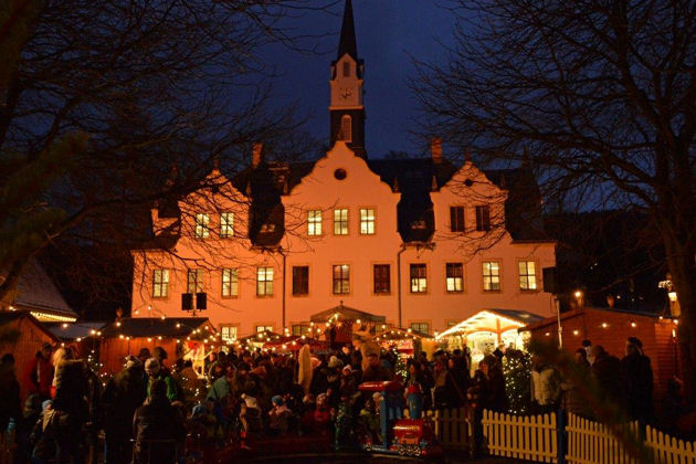 Erleben Sie den "Freitaler Schlossadvent" auf Schloss Burgk. Das historische Gebäudeensemble bildet den passenden Hintergrund für einen nostalgischen Weihnachtsmarkt. Ergänzt wird das Bild von bunten Lichtern, festlich geschmückten Christbäumen und weihnachtlich dekorierten Verkaufsbuden. Ein Duft von Glühwein, Gebratenen und Gebackenen überzieht den Schlosshof. Im Schlosshof bieten Händler und Handwerker ihre Waren an. Für die Kinder werden zahlreiche Mitmachaktionen geboten, wie Basteln, Bogenschießen, eine Mini-Eisenbahn und vieles mehr. An allen vier Tagen können sich die Kinder auf den Weihnachtsmann freuen, der mit seinen gefüllten Sack über den Markt schlendert. Zum Schauen und Staunen lädt die traditionelle Weihnachtsschau in den Städtischen Sammlungen Freital ein. Der Weihnachtsmarkt auf Schloss Burgk in Freital findet immer am 1. und 2. Adventswochenende statt. (© FuM)