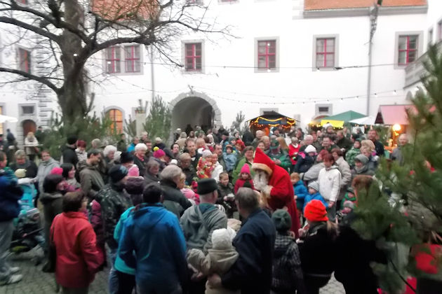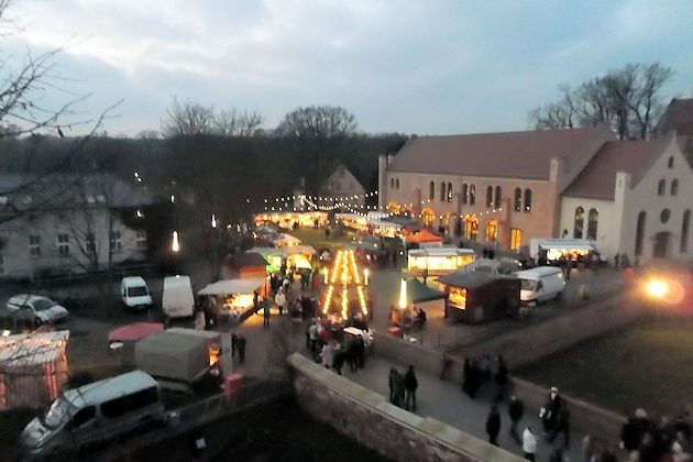 Der Weihnachtsmarkt in Doberlug-Kirchhain findet auch in diesem Jahr auf dem Areal von Schloss Doberlug statt. Händler und Vereine bauen hier ihre Stände auf und bieten Kunsthandwerk, Weihnachtsdekoration und Geschenkartikeln an. Die Palette der kulinarischen Spezialitäten reicht von den üblichen Weihnachtsleckereien über geräucherten Fisch bis zu Glühwein und Holunderpunsch. Die Kinder dürfen sich auf den Besuch des Weihnachtsmannes freuen. Neben musikalischen Einlagen auf dem Schlossareal gehört auch in diesem Jahr wieder ein buntes Familienprogramm. (© FuM)