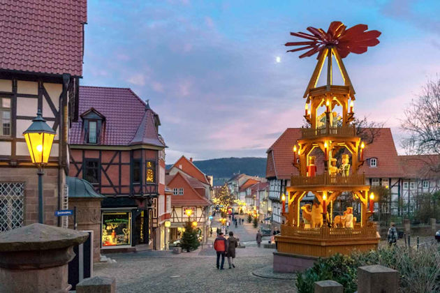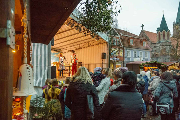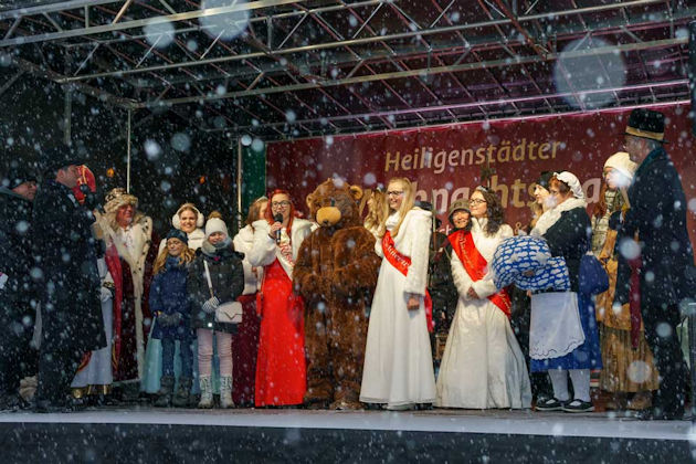Zum Weihnachtsmarkt im Heilbad Heiligenstadt verwandelt sich die Fußgängerzone in eine kleine Budenstadt. Vor der Kulisse der historischen Altstadt bieten Händler und Gastronomen weihnachtliche Waren und kulinarische Leckereien an. Abgerundet wird der Weihnachtsmarkt im Heilbad Heiligenstadt mit einem umfangreichen Rahmenprogramm am zweiten und dritten Adventswochenende. Die örtlichen Einzelhändler beteiligen sich in der Regel am zweiten Advent mit einem verkaufsoffenen Sonntag am Weihnachtsmarkt. Sehenswert sind die 9 Meter hohe Pyramide auf dem Berg vor der St.-Martins-Kirche und die Weihnachtskrippe mit den lebensgroßen handgeschnitzten Figuren auf dem Marktplatz. (© FuM)