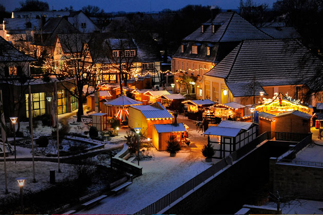 Auch in diesem Jahr öffnet der Winterfunkeln-Weihnachtsmarkt in Bad Sassendorf seine Pforten. Die Lichtinstallationen des "Winter-Funkelns" versetzen den Kurpark mit Einbruch der Dunkelheit zusätzlich zur stimmungsvollen Weihnachtsbeleuchtung in ein Lichtermeer. Der Winterfunkeln-Weihnachtsmarkt beschert an mehr als 40 Hütten ein umfangreiches Angebot an weihnachtlicher Handwerkskunst und farbenfrohen Dekorationsartikeln. Natürlich dürfen süße Leckereien, Grillspezialitäten und der obligatorische Glühwein nicht fehlen. Die Kinder dürfen sich auf historische Fahrgeschäfte freuen. Der Weihnachtsmarkt in Bad Sassendorf findet immer von Donnerstag bis Sonntag in den beiden Wochen vor der Adventszeit (Ausnahme am Totensonntag geschlossen) sowie in allen vier Adventswochen. (© FuM)