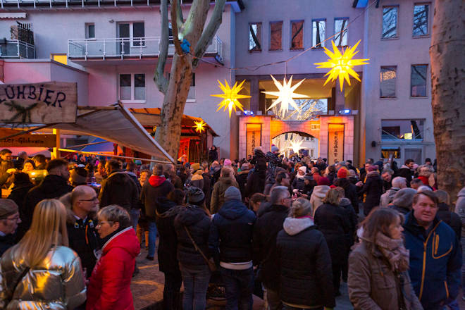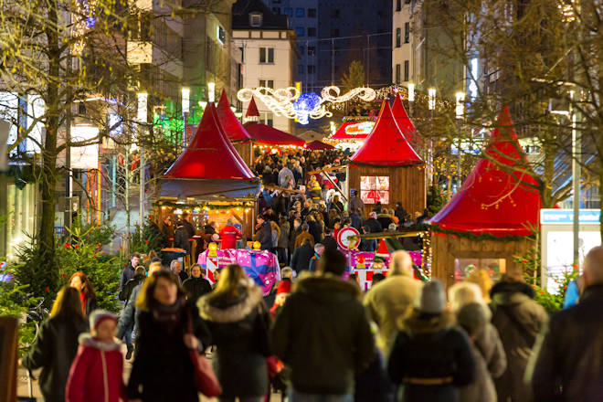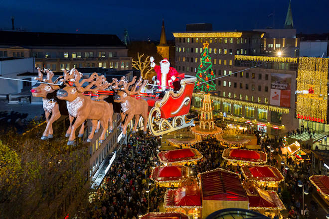 Der Weihnachtsmarkt in Bochum mit seinem umfangreichen Angebot und vielfältigen Programm findet 2025 bereits zum 54. Mal statt. An etwa 200 liebevoll geschmückten Ständen finden die Besucher viele Geschenkideen wie Kunstgewerbe, Krippen, Holzspielzeug und verschiedenes traditionelles Handwerk. Wieder mit dabei wird die "Bochumer Weihnachtszentrale" in Hütte 307 mit lokalen Präsenten und Heimat der Wunschzettelaktion sein. Auf der Sparkassen-Weihnachtsbühne am Dr.-Ruer-Platz wird an den Wochenenden ein abwechslungsreiches Programm geboten. Täglich freuen sich die Kinder auf den "Fliegenden Weihnachtsmann", welcher auf seinem von Rentieren gezogenen Schlitten in luftiger Höhe schwebt. Auf dem mittelalterlichen Markt an der Pauluskirche verzaubern Handwerksleute, Musici, Gaukler und weit gereiste Händler die Besucher. Die Kinder dürfen sich auf Karussells und das historische Holzriesenrad freuen. Wer es sportlich mag, für den gibt es die Eisstockbahn auf dem Boulevard vor "Mutter Wittig". (© FuM)