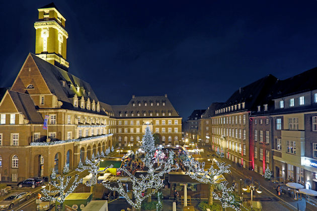 Der Weihnachtsmarkt in Bottrop 2025 findet zum 10. Mal unter dem neuen Namen "Bottroper Weihnachtszauber" statt. Auf dem festlich geschmückten Rathausplatz öffnen die Weihnachtsmarkthütten immer von Donnerstag bis Sonntag. Rund 60 Aussteller präsentieren mit wechselnden Angeboten einzigartiges Kunsthandwerk. Kulinarische Spezialitäten wie Backfisch, Bratwurst, Mandeln und Popcorn werden ebenso wie der obligatorische Glühwein (ausgeschenkt in der "Jägerhütte") angeboten. An den Wochenenden sorgt ein abwechslungsreiches Bühnenprogramm für vorweihnachtliche Stimmung. Neben dem historischen Rathausplatz sorgt der Mensingplatz mit einer durchgängigen Öffnung für weihnachtliche Stimmung. (© FuM)