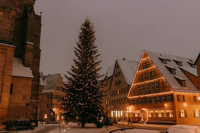 Der Weihnachtsmarkt in Dinkelsbühl verspricht unter dem bezaubernden Motto "Ihr Kinderlein kommet" eine festliche Atmosphäre und einen Hauch von Nostalgie. Der stimmungsvolle Weihnachtsmarkt findet im Spitalhof statt. Die Stadt ehrt damit ihren berühmten Sohn Christoph von Schmid, der den Text zu "Ihr Kinderlein kommet" verfasste. Etwa 80 liebevoll geschmückte Holzbuden entlang der Wege bieten traditionelles Kunsthandwerk wie handgefertigte Kerzen, Schnitzereien und Weihnachtsschmuck. Die kulinarische Vielfalt ist ebenso beeindruckend, von deftigen Bratwürsten bis zu gebrannten Mandeln und frisch gebackenen Waffeln. Der Duft von Glühwein und Gewürzen durchdringt die Luft und schafft eine gemütliche Atmosphäre. Das Rahmenprogramm des Weihnachtsmarktes bietet tägliche Konzerte und Chorauftritte. Die jüngsten Gäste können sich auf ein Kinderkarussell, eine Märchenstunde und den Besuch des Nikolaus freuen. Zusätzlich zum Weihnachtsmarkt gibt es einen Kunsthandwerkermarkt im Konzertsaal im Spitalhof mit festlichen Dekorations- und Geschenkideen. Dinkelsbühl erstrahlt zur Adventszeit in historischem Glanz, und ein Spaziergang durch die Altstadt mit dem imposanten Münster St. Georg und seiner riesigen Krippe ist ein absolutes Highlight. (© FuM)