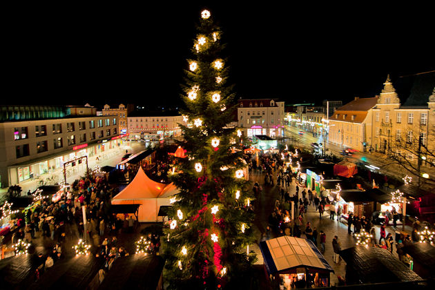 Der Weihnachtsmarkt in Eberswalde findet auch in diesem Jahr auf dem Marktplatz statt. Schon auf die Eröffnung freuen sich alle Kinder, denn vom Karl-Marx-Platz aus startet wieder der Lampionumzug mit der Schneekönigin. An den Marktständen werden weihnachtliche Waren, Geschenkartikel sowie kulinarische Spezialitäten wie süße Leckereien, deftiger Imbiss und Glühwein angeboten. Ein weiterer Höhepunkt ist der Stollenanschnitt des Riesenstollens. Musikalische Untermalung durch Gesangs- und Posaunenchöre runden das Rahmenprogramm ab. Der Weihnachtsmarkt in Eberswalde startet am Freitag vor dem 1. Advent und endet am 2. Advent. (© FuM)