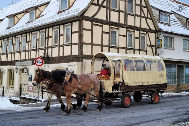 Die Scheunenweihnacht in Fladungen erlebt in diesem Jahr eine Neuauflage. Das idyllische Scheunenviertel in Fladungen wird zum Schauplatz für diesen Weihnachtsmarkt. Ein romantischer Weg führt die Besucher vom Marktplatz zum Scheunenviertel, wo eine vielfältige Mischung von sorgfältig ausgewählten Marktständen auf die Besucher wartet. Ein breites kulinarisches Angebot und reichlich Glühwein sorgen für winterliche Stimmung. Zum Rahmenprogramm gehören eine Feuershow am Samstag, musikalische Klänge und eine Tombola. Die Kinder dürfen sich auf den Besuch eines Weihnachtsengels freuen, der ihre Wunschzettel in Empfang nimmt. Ein ganz besonderes Highlight sind die Kutschfahrten, die am Sonntag angeboten werden. Sie ermöglichen eine entspannte Erkundung der malerischen Umgebung. Für diejenigen, die die umliegenden Weihnachtsmärkte besuchen möchten, steht der "Glühwein-Express" zur Verfügung, ein Bus-Shuttle, der die Haltestellen in Ostheim, Stetten und Oberelsbach anfährt. (© FuM)