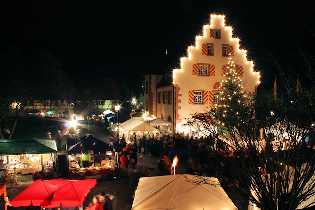 Am Weihnachtsmarkt in Friesenheim beteiligen sich Schulklassen, Vereine, Hobbyhandwerker und Privatpersonen. Die festlich geschmückten Stände bieten eine breite Palette an handwerklichen Arbeiten und selbstgebastelten Weihnachtsartikeln, die sich perfekt als Geschenke eignen. Ob handgefertigte Dekorationen, kunstvolle Kerzen oder kunsthandwerkliche Kostbarkeiten - hier findet man einzigartige Unikate. Aber auch die Gaumenfreuden kommen nicht zu kurz. Der verlockende Duft von köstlichen Leckereien wie gebrannten Mandeln, würzigem Glühwein und herzhafter regionaler Küche erfüllt die Luft und sorgt für ein rundum festliches Erlebnis. Der Weihnachtsmarkt in Friesenheim findet immer am Samstag vor dem 1. Advent statt. (© FuM)