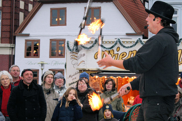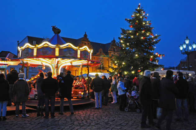 Am dritten Adventswochenende öffnet der traditionelle Weihnachtsmarkt auf dem historischen Marktplatz in Glückstadt. In den Buden rund um die im Lichterglanz erstrahlende Marktplatztanne werden klassischen Weihnachtsartikel wie Kerzen, Geschenkwaren und Tannenbäume, kulinarische Köstlichkeiten aus der Region, gebrannte Mandeln und Gebäck sowie Glühwein und Apfelgrog angeboten. Zusätzlich präsentieren Künstler und Handwerker individuelle Gegenstände und schöne, selbst gemachte Dinge. Auf die kleinen Marktbesucher wartet ein Kinderkarussell und natürlich der Weihnachtsmann. Ein abwechslungsreiches Rahmenprogramm rundet den Weihnachtsmarkt in Glückstadt ab. (© FuM)