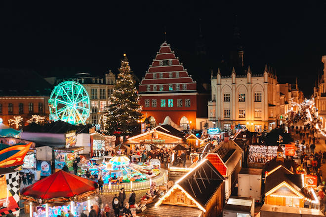 Der Weihnachtsmarkt in Greifswald lädt ab dem 27. November 2025 für rund drei Wochen zum besinnlichen Verweilen auf dem historischen Marktplatz und dem Fischmarkt inmitten der Altstadt ein. Trotz seiner Größe gehört er zu den charmanten Märkten im Norden und verspricht eine vielfältige Mischung aus Naschwerk, Glühwein, Ruhe und Trubel. Mit 35 Ausstellenden, festlich geschmückten Holzbuden und einem imposanten 16 Meter hohen Weihnachtsbaum bildet der Markt eine malerische Kulisse im mittelalterlichen Ambiente der Altstadt. In diesem Jahr erwartet die Besucher eine besondere Neuerung auf dem Fischmarkt, der sich in ein gemütliches Dorf verwandelt. Hier können Gäste abseits des Trubels an Feuerschalen Herzhaftes, Glühwein oder Glögg genießen. Ein Höhepunkt des Greifswalder Weihnachtsmarktes ist die hölzerne Adventskirche, die bereits seit zwölf Jahren einen festen Platz hat. Betrieben vom Kapellenverein Greifswald e. V., laden Kirchgemeinden und Vereine täglich von 15:00 bis 18:00 Uhr zu einem besinnlichen Programm ein. Die Adventskirche präsentiert eine Vielfalt von Engeln als Symbole des Schutzes und der frohen Botschaft. Ein Kummerkasten steht für Wünsche, Gebete und Fürbitten bereit. Am Nikolaustag verteilen Ehrenamtliche kleine Geschenke an die Kinder, und am 21. Dezember werden Friedenslichter ausgegeben. Die Vereinshütte auf dem Fischmarkt bietet Greifswalder Vereinen und Einrichtungen die Möglichkeit, ihre Arbeit vorzustellen, Produkte zu verkaufen und mit den Gästen ins Gespräch zu kommen. Die Hütte ist täglich von 15:00 bis 18:00 Uhr, am Wochenende bereits ab 12:00 Uhr geöffnet und präsentiert ein breites Spektrum von sportlichen bis nachhaltigen Angeboten. Ein weiteres Highlight ist der Kunsthandwerkermarkt im Rathauskeller, der mit 60 Manufakturen, Ateliers und Werkstätten aus der Region aufwartet. Der historische Rathauskeller erstrahlt in adventlichem Licht und bietet eine vielfältige Auswahl an Handwerkskunst, von Keramiken über Textilien bis hin zu Schmuck und vielem mehr. Das gemütliche Adventscafé lädt zum Verweilen und Aufwärmen ein, während die Besucher nach besonderen Geschenken für ihre Liebsten stöbern können. Der Weihnachtsmarkt in Greifswald verspricht somit eine stimmungsvolle Mischung aus Tradition, Unterhaltung und besinnlichem Flair für die ganze Familie. (© FuM)