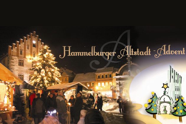 Altstadt-Advent heißt der Weihnachtsmarkt in Hammelburg, welcher traditionell am ersten Advents-Wochenende stattfindet. Zahlreiche Stände auf dem Marktplatz und in den Altstadthöfen halten ein vielseitiges Angebot für die Besucher bereit. Allein wegen der Schlemmereien ist ein Besuch schon lohnenswert. Über die ganze Altstadt verteilt, in zehn bis fünfzehn Altstadt-Höfen, findet man Kurioses, Einzigartiges und Weihnachtliches. Im Rathausdurchgang befindet sich ein winterliches Handwerkerdorf, welches den Handwerkermarkt beherbergt. Die kleinen Besucher dürfen sich insbesondere auf das Nostalgie-Karussell freuen. Ein abwechslungsreiches Programm mit viel Musik rundet den Altstadt-Advent in Hammelburg ab, wobei der Auftritt von Alphornbläsern am Samstag den Höhepunkt bildet. (© FuM)