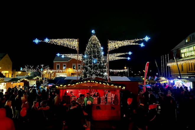 Der Weihnachtsmarkt in Heidenau (Sachsen) wird traditionell mit dem Lampionumzug am Freitagabend eröffnet. Dieser startet am Spielplatz Ringstraße und dann zusammen mit dem Weihnachtsmann am Mühlgraben entlang über die E.-Thälmann-Straße zum Marktplatz. Die Stände auf dem Marktplatz bieten eine breite Palette von Kunsthandwerk, darunter handgefertigte Dekorationen und Geschenke. Für Naschkatzen ist der köstliche Stollen ein Muss, begleitet von weiteren weihnachtlichen Leckereien. Der Weihnachtsmarkt in Heidenau unterhält die Besucher mit einem vielfältigen Bühnenprogramm, das sowohl Klein als auch Groß begeistert. Ein besonderer Höhepunkt wird die Feuershow am Samstagabend sein. Der Weihnachtsmarkt in Heidenau findet immer am ersten Adventswochenende statt. (© FuM)