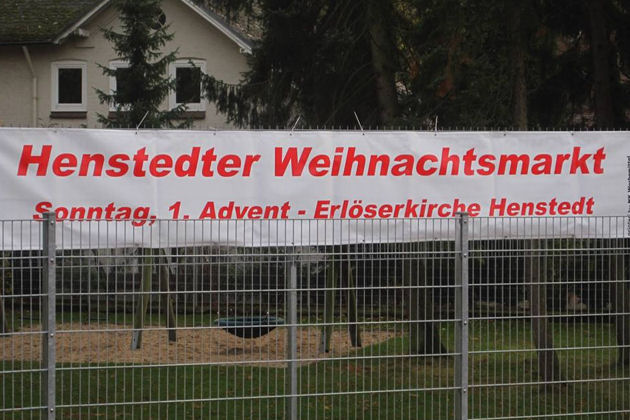 Der Weihnachtsmarkt in Henstedt-Ulzburg im Ortsteil Henstedt wird jedes Jahr am 1. Advent an der Erlöserkirche veranstaltet. Rund um die Kirche sind Zelte und Buden aufgestellt. Diese werden von der Kirchengemeinde und deren ehrenamtlichen Helfern bestückt. Nach dem Gottesdienst, der um 10 Uhr stattfindet, können die Besucher anschließend auf dem Weihnachtsmarkt verweilen. Handwerkliche Waren, Leckereien und festliche Getränke sind fester Bestandteil. Am Nachmittag können die Besucher in der Kirche einem Musikprogramm lauschen. (© FuM)
