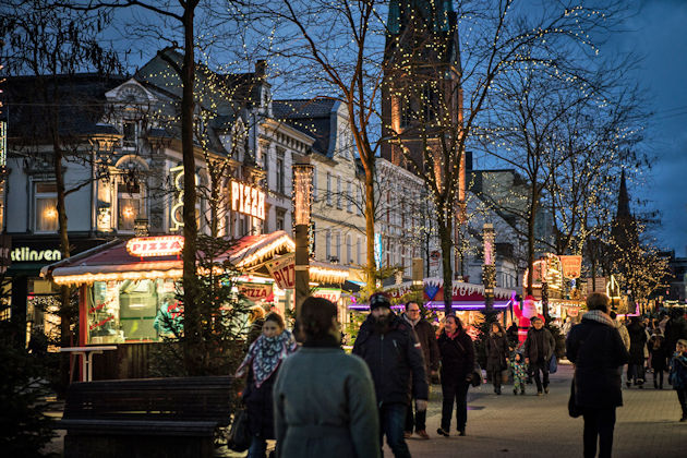 Der Weihnachtsmarkt in Herne lädt zum gemütlichen Bummeln und Schlemmen in die Herner Innenstadt ein. Dieser Markt zeichnet sich durch seine familiäre Stimmung aus, hauptsächlich aufgrund der inhabergeführten Stände. Ein besonderes Highlight ist die Karitative Hütte, die etwa 30 Vereinen, gemeinnützigen Organisationen, Schulen und Kitas eine Plattform bietet, um ihre wertvolle Arbeit zu präsentieren. Hier haben Besucher die Möglichkeit, selbstgemachte Leckereien wie Plätzchen und Marmelade, kunstvolle Postkarten und handgestrickte Socken zu erwerben, wobei die Einnahmen einem guten Zweck dienen. Zusätzlich bietet die Handwerkshütte, die regelmäßig in eine der karitativen Hütten wechselt, kunstvolle Bastelarbeiten und handgemachte Strick- und Häkelarbeiten. Der Weihnachtsmarkt in Herne vereint somit traditionelles Weihnachtsflair mit sozialer Verantwortung und Kunsthandwerk. (© FuM)