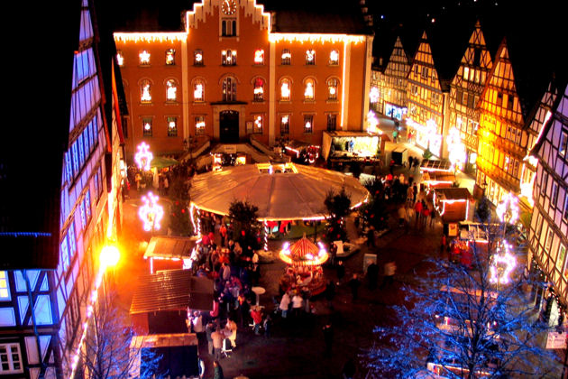 Der Hofgeismarer Weihnachtsmarkt findet 2025 am 2., 3. und 4. Adventswochenende in der im Lichterglanz erstrahlenden Fußgängerzone vom Marktplatz bis zur Mühlenstraße statt. Dabei verwandelt sich auch in diesem Jahr der Marktplatz in einen kleinen Weihnachtswald. In den liebevoll, weihnachtlich dekorierten Ständen bieten wechselnde Händler, Kunsthandwerker und Hobbybastler ihre weihnachtlichen Waren und Geschenkartikel an. Leckere Köstlichkeiten und Spezialitäten der Weihnachtszeit, Glühwein, Grog, Weihnachtsbier und alkoholfreie Kalt- und Heißgetränke sorgen für das leibliche Wohl. Ein abwechslungsreiches und weihnachtliches Bühnenprogramm stimmt die Besucher des Marktes auf das bevorstehende Weihnachtsfest ein. Mit Fahrgeschäften und einem speziellen Kinderprogramm wird dabei auch an die kleinen Marktbesucher gedacht. Weitere Höhepunkte können Sie rechtzeitig der örtlichen Pressen entnehmen. (© FuM)