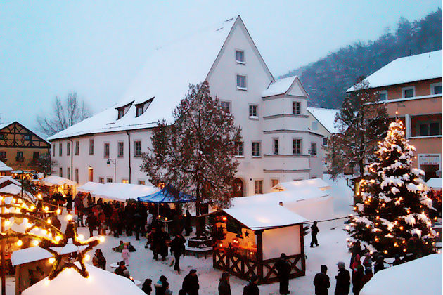 Zum Weihnachtsmarkt in Kipfenberg werden auf dem historischen Marktplatz etwa 30 weihnachtlich geschmückte Buden aufgebaut. Auch das Bürger- und Kulturzentrum Krone lädt zum Verweilen ein. Neben weihnachtlichen Waren und dekorativem Handwerk stehen kulinarische Leckereien wie Glühwein oder Weihnachtsgebäck im Mittelpunkt. Ein musikalisches Rahmenprogramm sorgt an beiden Tagen für weihnachtliche Stimmung auf dem Weihnachtsmarkt in Kipfenberg. Die Kinder dürfen sich am Sonntag auf den Besuch vom Nikolaus freuen. In der Regel findet der Weihnachtsmarkt in Kipfenberg am 2. Adventswochenende statt. (© FuM)
