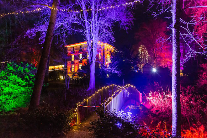 2025 findet "Kreuztalweihnacht - Lichterglanz im Park" bereits zum 13. Mal statt. Zu diesem Weihnachtsmarkt in Kreuztal verwandelt sich der Dreslersche Park wieder in ein geschmücktes Weihnachtsdorf. Die raffinierte Lichtillumination und die offenen Feuertonnen sorgen für eine besondere Atmosphäre. Im Mittelpunkt des Angebotes stehen kulinarische Spezialitäten, die von Apfelsaft bis Glühwein bzw. von Plätzchen bis deftige Leckereien reichen. Aber auch Kunsthandwerkliches oder Handgemachtes laden zum Stöbern ein. Erfreuen können sich Groß und Klein an einem vielfältigen musikalischen Rahmenprogramm mit Chören, Orchestern und Musikgruppen. Die Einzelhändler laden zusätzlich zum verkaufsoffenen Sonntag mit kostenlosen Bustransfer durch den Hübbelbummler ein. (© FuM)