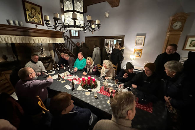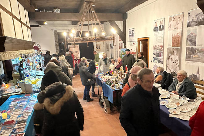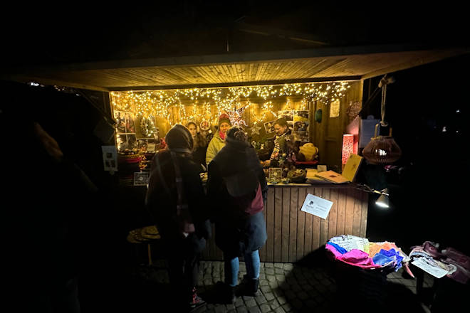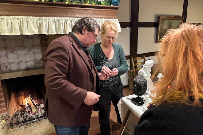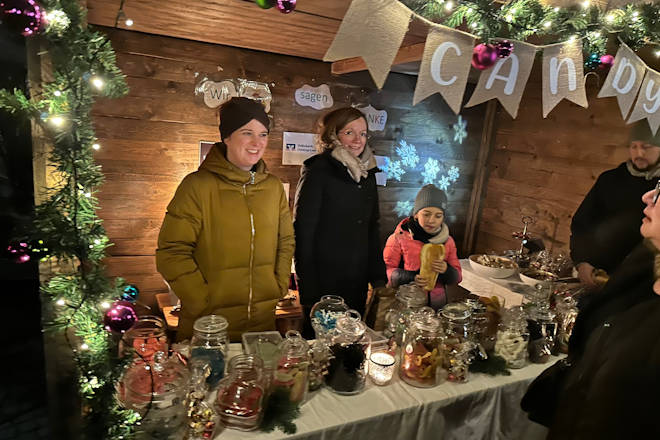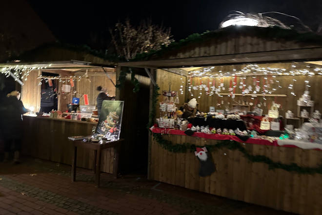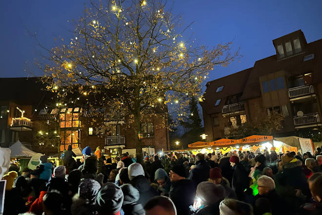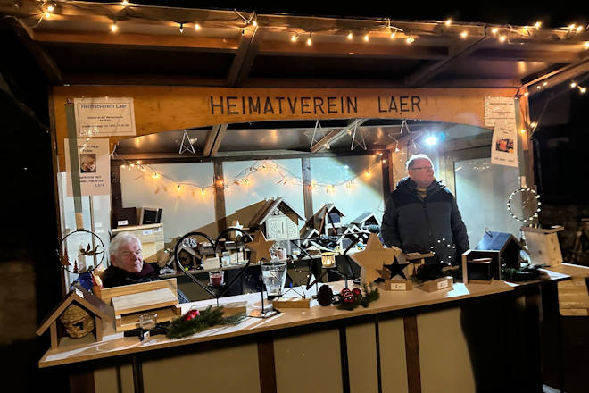 Zum Weihnachtsmarkt in der Gemeinde Laer im Kreis Steinfurt werden etwa 40 Verkaufsstände im historischen Dorfkern und im Rathaus aufgebaut, an denen Händler und Vereine ein breites weihnachtliches Warenangebot wie Kunstgewerbe, Geschenkartikel, Keramik und vieles mehr anbieten. Gastronomiestände mit Angeboten für "Leib & Seele" fehlen auch in Laer nicht. Am Samstag gegen 16 Uhr freuen sich die Kinder auf den Besuch vom Nikolaus. Eine Eisenbahn und Bastelangebote runden das Programm für die kleinen Besucher ab. Die Antiquitätenausstellung von Daniel Meyer, bekannt aus der ZDF Trödelshow "Bares für Rares", bildet erneut Bestandteil des Laerer Weihnachtsmarktes. (© FuM)